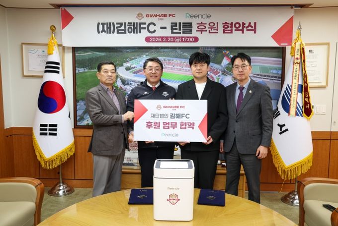 (비전21뉴스) 재단법인 김해FC가 지역 내 혁신 기업과의 파트너십을 통해 구단 경쟁력 강화와 지역 상생이라는 두 마리 토끼 잡기에 나섰다. 김해FC는 20일, 가정용 음식물처리기 전문 브랜드인 ‘린클(Reencle)’과 공식 후원 협약을 체결했다고 밝혔다. 이번 협약은 김해FC의 중장기 발전 5대 전략 중 하나인 브랜드 협력 프로젝트의 핵심 사업, ‘아이언 유니티 네트워크(Iron Unity Network)’ 구축의 일환으로 성사됐다.