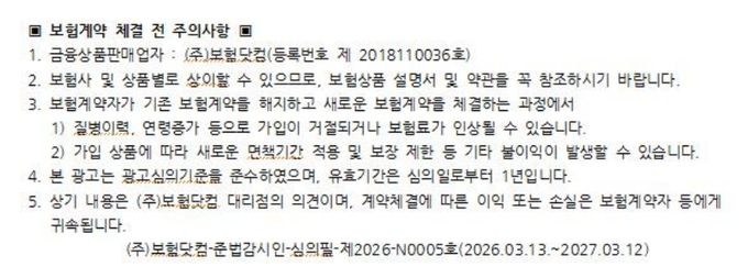 암을 비롯한 3대진단비보험 가입 시 나의 상황에 맞춰 적정 진단금액 설계 및 실시간 보험료 비교가 가능한 비갱신형 암보험 비교사이트를 활용하는 것도 매우 유용한 방법이다. 표적항암치료비보험 특약 유무, 대장점막내암의 유사암이 아닌 일반암 진단비 지급여부 확인 등 보험료 비교뿐 아니라 보험종류별 보장내용, 보험료납입면제 여부 등 다양한 가입조건에 대해서 상담 전문가와 주말까지도 상담이 가능하므로 3대진단비 등 종합건강보험 가입 시 편리하게 상품선택에 도움을 받을 수 있을 것이다.