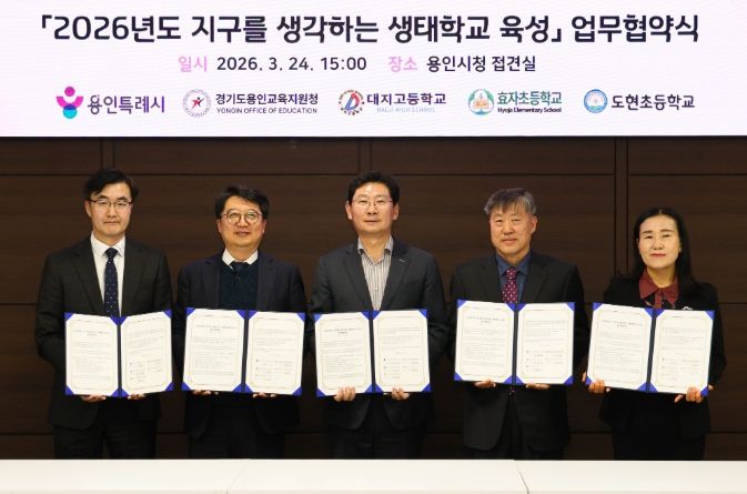 (비전21뉴스) 용인특례시는 24일 시청 접견실에서 용인교육지원청을 비롯해 3개 학교와 ‘지구를 생각하는 생태학교 육성사업’을 위한 협약을 맺었다.