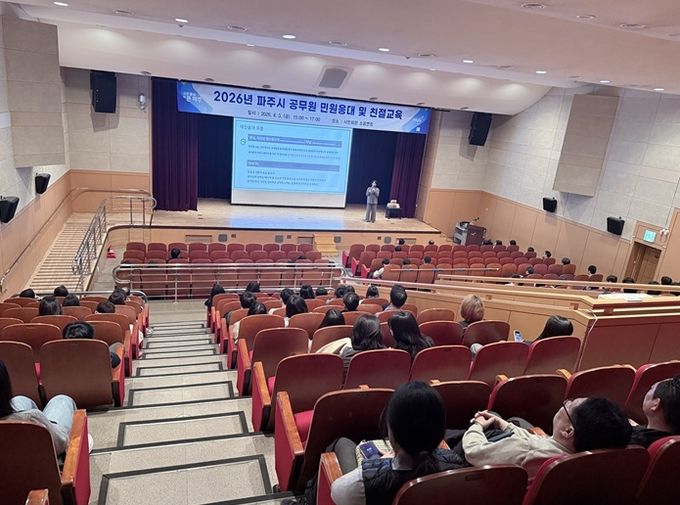 (비전21뉴스) 파주시는 지난 3일 파주시민회관 소공연장에서 민원 담당 공무원 220명을 대상으로 민원 응대 역량 강화를 위한 녪년 파주시 공무원 민원응대 및 친절교육’을 실시했다.