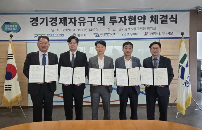 (비전21뉴스) 경기경제자유구역청은 15일 경기경제청 8층 회의실에서 평택시 및 자동차부품, 반도체, 화학 제조기업 5개사(㈜왕성이노텍, 조양메탈㈜, ㈜광석인터내셔날/그 외 2개 기업 서면 협약)와 평택 포승(BIX)지구 산업시설용지 투자협약을 체결했다.