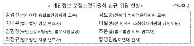 신규 위촉된 위원들은 인공지능(AI)·데이터 및 피해구제 등 개인정보 전문가로서 분쟁조정위의 전문성을 한층 더 높일 수 있을 것으로 기대된다.