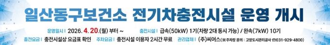 이번 전기차충전시설 운영은 친환경자동차 보급 확대와 시민 편의 증진을 위해 추진됐다. 시설 위치는 일산동구보건소 1층 옥외 주차장이며, ▲급속충전기(50kW, 1기)로 차량 2대, ▲완속충전기(7kW, 10기)로 차량 10대, 총 12대가 한 번에 충전이 가능한 규모이다.