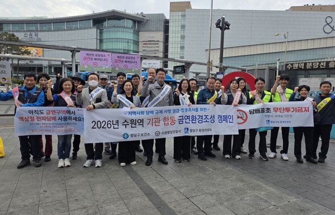 (비전21뉴스) 수원시 팔달구보건소는 17일 수원역 일원에서 ‘금연환경조성 합동 캠페인’을 펼쳤다.
