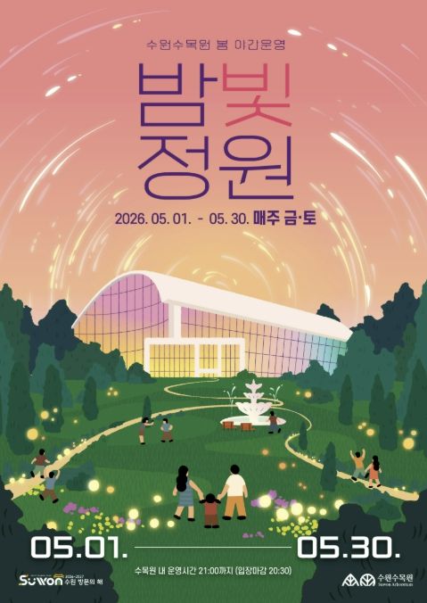 (비전21뉴스) 수원특례시가 5월 1일부터 30일까지 매주 금·토요일 일월·영흥수목원에서 ‘2026년 수원수목원 봄 밤빛정원’을 연다.