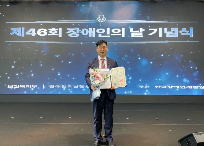(비전21뉴스) 하남시장애인복지관 민복기 관장이 4월 20일 열린 제46회 장애인의 날 기념 유공자 포상에서 대통령 표창을 수상했다.