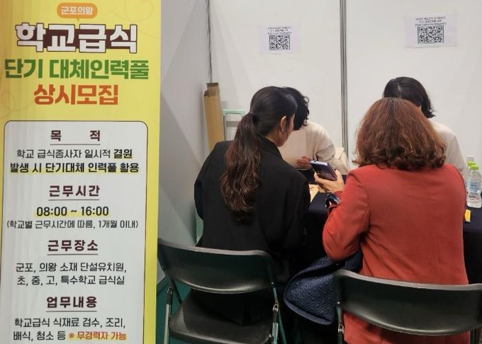 (비전21뉴스) 군포의왕교육지원청은 2026년 4월 23일 의왕국민체육센터 2층에서 군포·의왕 지역 학교급식 단기 대체인력풀 상시모집을 위한 홍보 행사를 실시했다.