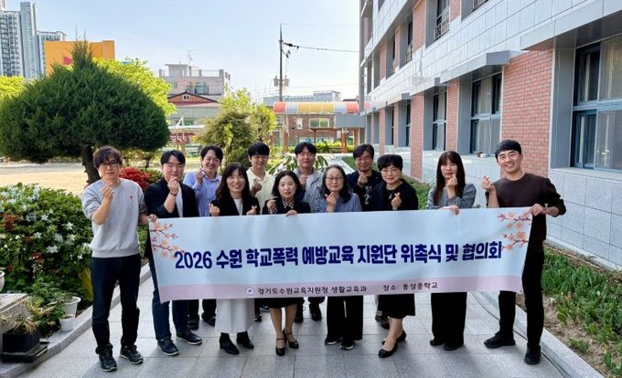 (비전21뉴스) 수원교육지원청은 4월 22일, 23일 양일간‘2026 학교폭력예방 지원단 및 학교폭력 사안처리 현장지원단 위촉식 및 협의회’를 개최했다. 총 23명의 지원단이 위촉장을 받고, 학교폭력 예방 및 학교폭력 사안 처리 대응 체계 구축을 위해 머리를 맞댔다.