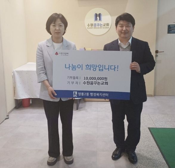 수원시 영통구 영통2동, 수원꿈꾸는교회 '사랑실천 이웃돕기성금' 1천만원 기부