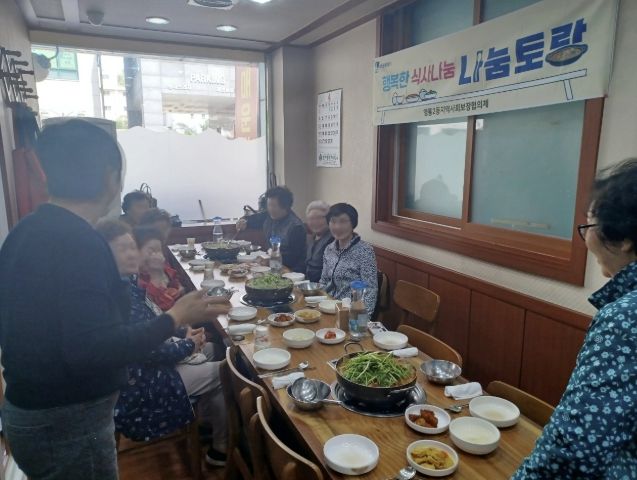 ‘나눔토랑’은 ‘나눔+레스토랑’의 의미를 담은 사업으로, 관내에서 식당을 운영하는 지역사회보장협의체 민경춘 부위원장이 경로당 어르신들을 초청해 매달 한 끼 식사를 대접하는 나눔 활동이다.