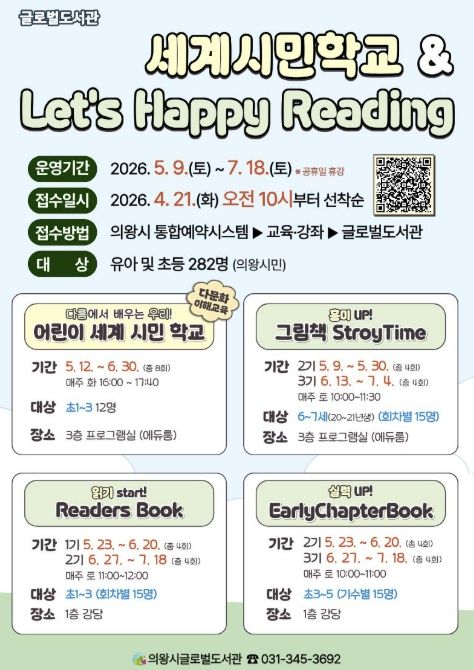의왕시 글로벌도서관, '세계 시민 학교 & Let`s Happy Reading' 참여자 모집
