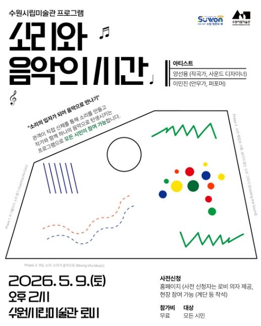 (비전21뉴스) 경기도 수원시립미술관은 을 맞아 소리를 주제로 한 음악 프로그램 '소리와 음악의 시간'을 5월 9일 개최하며 참여자를 모집한다.