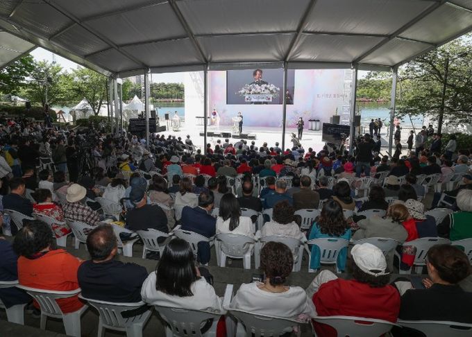 행사는 개회선언과 고양시립합창단의 축하공연을 시작으로 개회사, 오프닝 세리머니(버튼 이벤트·LED 개화 영상), 가수 김다현의 축하무대가 이어져 행사를 분위기를 띄웠다.