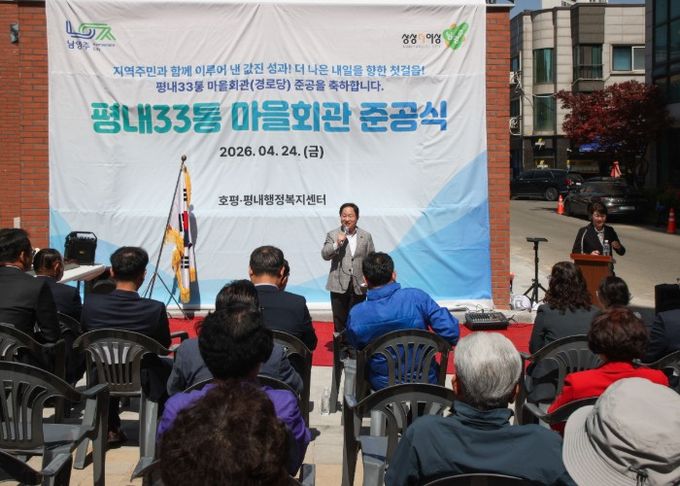(비전21뉴스) 남양주시는 24일 평내동 588-19번지 일원에서 평내33통 마을회관 재건축사업 준공식을 개최했다고 밝혔다.