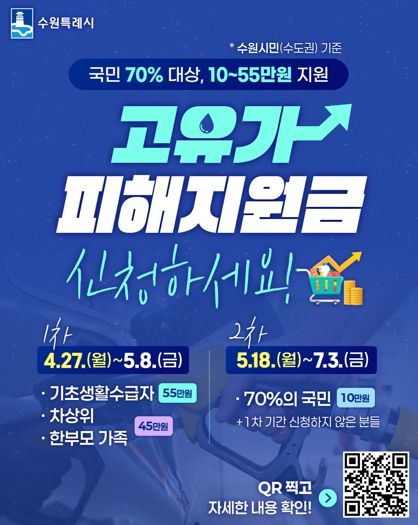 수원시는 선제적으로 선불카드(신한) 17만 장을 확보하는 등 고유가 피해지원금 지급을 위한 준비를 마쳤다. 고령자·장애인 등 거동이 불편한 주민들을 대상으로 ‘찾아가는 신청 서비스’도 운영할 예정이다.