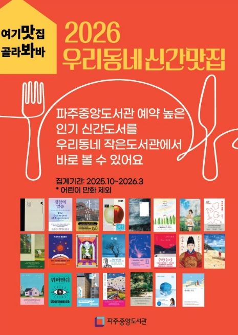(비전21뉴스) 파주시 중앙도서관은 지역 내 작은도서관 활성화를 위해 2024년부터 추진해 온 '우리동네 신간맛집' 사업을 지난 23일부터 관내 13개 작은도서관과 함께 본격 운영하고 있다.
