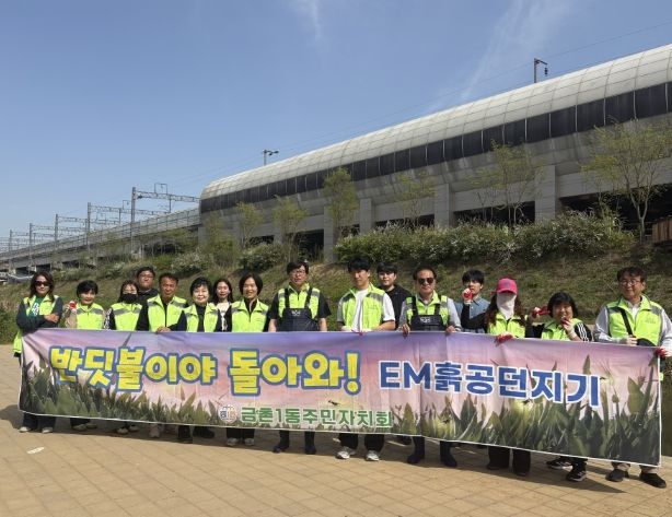 이날 주민자치회 위원들은 지난달 직접 제작한 유용미생물(EM) 흙공을 금촌천에 투하했다. 유용미생물(EM) 흙공은 효모, 유산균, 광합성균 등 유용 미생물을 황토와 배합해 발효시킨 친환경 자원으로, 수중에 투입되면 오염물질 분해를 촉진하고 악취를 줄이는 데 도움을 주는 것으로 알려져 있다. 이를 통해 하천 수질 개선은 물론, 수생태계 회복에도 긍정적인 효과가 기대된다.