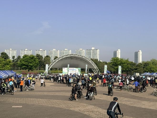 이날 행사에는 시민 1,000여 명이 참여해 성황을 이뤘다. 참가자들은 출발에 앞서 치어리더와 함께 부상 방지를 위한 스트레칭을 진행한 뒤, 호수공원을 출발해 코스를 따라 라이딩을 즐겼다.