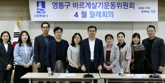 (비전21뉴스) 수원시 영통구는 지난 24일 바르게살기운동 영통구지도위원회가 영통구청 상황실에서 각 동 위원장 및 총무 등 14명이 참석한 가운데 4월 월례회의를 개최했다고 밝혔다.
