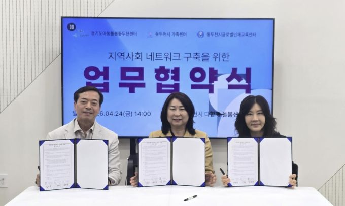 (비전21뉴스) 동두천시글로벌인재교육센터는 지난 24일 동두천시가족센터, 동두천시다함께돌봄센터1호점(경기도아동돌봄동두천센터)과 함께 지역사회 네트워크 구축을 위한 3자 간 업무협약(MOU)을 체결했다고 밝혔다.