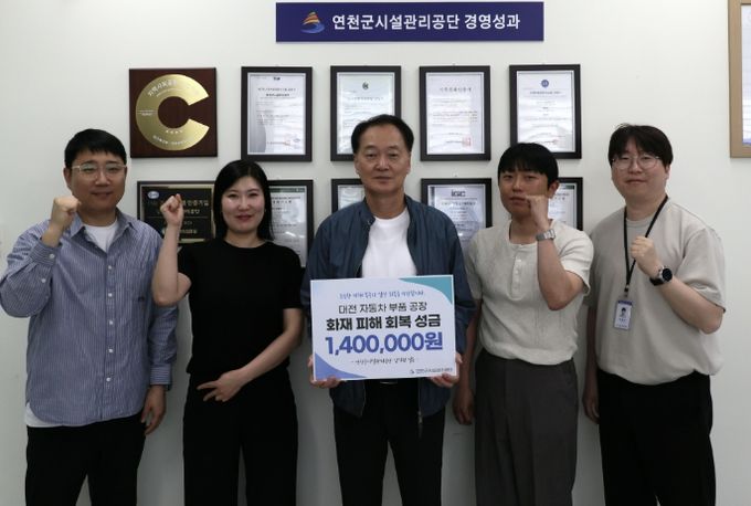 (비전21뉴스) 연천군시설관리공단은 지난 23일 대전 자동차 부품 공장 화재로 피해를 입은 근로자 및 이재민 지원을 위한 성금 1,400,000원을 대한적십자사에 전달했다고 밝혔다.