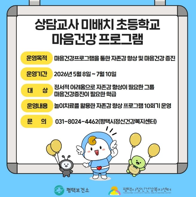 평택시, 상담교사 미배치 초등학교 대상 '마음건강 프로그램' 운영