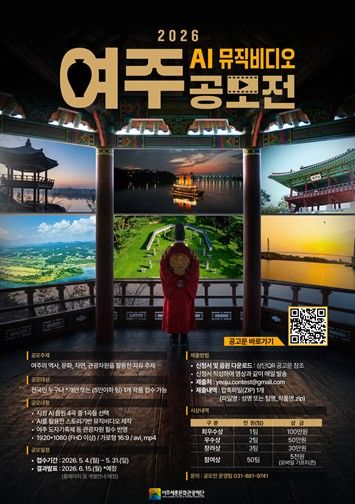 (비전21뉴스) 여주세종문화관광재단은 여주시 관광 콘텐츠를 활용한 시민 참여형 영상 제작 프로젝트인 '2026 여주 AI 뮤직비디오 공모전'을 개최한다고 밝혔다.