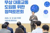 (비전21뉴스=정서영 기자) 수원특례시는 12일 시청 중회의실에서 ‘수원시 무상대중교통 도입 정책토론회’를 열고, ‘수원형 무상대중교통’ 도입 정책 방향을 공유했다. 이날 정책토론회는 주제 발표와 종합토론으로 진행됐다. 김채만 경기연구원 선임연구위원이 ‘미래 대중교통 정책방향-쿠리치바 대중교통 사례’, 김숙희 수원시정연구원 선임연구위원이 ‘수원시 무상대중교통 도입 방향’을 주제로 발표했다. 수원시는 사회초년생 청년과 어르신의 교통비 부담을 덜어주기 위해 내년 1월 1일부터 무상대중교통 지원사업을 시작한다. 지원 대상은 19~23세 청년, 70세 이상 어르신이다(신청일 기준). 19~23세 청년이 K-패스 교통카드로 대중교통을 이용하면 한 달에 최대 2만 3100원(연 27만 7200원)을 환급한다. 어르신은 농협에서 우대 교통카드(G-PASS)를 발급받아 사용하면 실제 사용 금액에 대해 분기별 최대 6만 9300원(연 27만 7200원 한도)를 지원한다. 종합토론에는 아주대학교 오영태 교수, 한국교통연구원 박준식 본부장, 경기대학교 김정화 교수, 경기도 광역교통정책과 윤태완 과장이 참여했다. 인사말을 한 이재준 수원시장은 “새빛만남을 하며 44개 동에 시민들