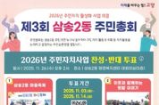 (비전21뉴스) 고양특례시 덕양구 삼송2동 주민자치회는 오는 11월 26일 개최될 ‘제3회 주민총회’를 앞두고, 2026년도 주민자치사업 선정을 위한 사전투표를 진행한다고 밝혔다. 이번 주민총회는 ‘주민이 직접 결정하는 마을자치 실현’을 목표로, 주민 참여를 극대화하고 활기찬 지역 공동체를 조성하는 데 중점을 둔다. 주요 안건으로 ▲마을축제 ▲이웃과 함께하는 텃밭이야기 ▲마을신문 발행 ▲여름아 반갑다! 신나는 물총놀이 ▲다함께 건강 웃음 한마당 등이 제안됐으며, 주민들의 투표 결과에 따라 2026년도 사업 추진 여부가 최종 결정될 예정이다. 투표는 주민 누구나 손쉽게 참여할 수 있도록 다양한 방식으로 진행된다. 11월 3일부터 14일까지는 QR코드를 활용한 온라인 투표가 진행되며, 11월 7일 원흥역 1번 출구와 19단지 사거리에서 현장 길거리 투표가 열린다. 이를 통해 주민 접근성과 참여율을 한층 높일 계획이다. 김성민 주민자치회장은 “주민 한 분 한 분의 참여가 마을의 미래를 만든다.”며 “이번 총회를 통해 삼송2동이 함께 성장하고 웃을 수 있는 마을로 나아가길 기대하며, 주민들의 적극적인 관심