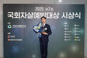 (비전21뉴스) 동두천시의회 권영기 의원이 지난 12월 11일, 국회에서 개최된 '2025 제7회 국회자살예방대상' 시상식에서 지방의회부문 국회자살예방포럼상을 수상했다. 이번 시상식은 국회자살예방포럼(공동대표의원 김교흥·정점식)과 안실련·생명보험사회공헌재단이 공동 주최했으며, 자살예방 관련 각 분야에서 헌신적으로 활동하는 대한민국 국민을 발굴, 포상하여 자살예방문화 확산에 기여하는 행사다. 권영기의원은 그동안 심리·정서적 위기 대응 체계 강화, 취약계층 정신건강 지원 확대, 생명존중 문화 조성 정책 제안, 청소년 보호 및 상담 지원 활동 강화 등 지역사회 자살 예방을 위한 다양한 노력을 지속해 왔다. 특히 지난 2월 5분발언을 통해‘관내 1인 가구에 대한 자살 방지·예방시책 마련’의 필요성을 적극 제기하고, 이를 통해 지역의 생명안전망 구축에 실질적인 성과를 거둔 점이 높은 평가를 받았다. 권의원은 “이번 수상은 동두천시의회와 지역사회가 함께 생명존중 가치를 지켜온 노력의 결실”이라며 “앞으로도 시민의 생명을 지키는 정책을 최우선 가치로 두고, 촘촘한 자살 예방 안전망을 구축하는 데 더욱 최선을 다