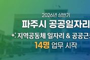(비전21뉴스) 파주시가 올해 상반기 지역공동체 일자리사업을 3일부터 시작했다. 최종 선발된 사업 참여자들은 이날 각자 배정된 일터로 첫 출근했다. 지역공동체 일자리사업은 실직 상태이거나 정기소득이 없는 18세 이상 파주시민을 대상으로 하며, 지역 자원을 활용하거나 현안을 반영한 일자리를 발굴해 지역공동체 형성에 보탬을 주기 위한 일자리 사업이다. 시는 이번 지역공동체 일자리사업으로 ▲청년 일자리사업 ▲주말농장 환경 정비 ▲촘촘보조교사 등 3개 사업을 추진하여 11명을 선발했으며, 시급한 현안에 대응하기 위해 추가로 선발한 공공근로사업 참여자 3명까지 총 14명을 선발했다. 이번 참여자들은 이달 3일부터 6월 24일까지 약 4개월간 근무하게 된다. 이이구 민생경제과장은 “공공근로사업이 단순한 재정 지원 일자리를 넘어 안정적인 일자리를 찾아가기 위한 마중물이 될 수 있도록 노력해 나가겠다”라고 말했다. 한편 시는 이달 중순경 '2026년도 2단계 공공근로사업’참여자를 모집할 예정이며, 자세한 사항은 파주시청 누리집을 참고하면 된다.