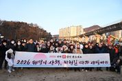 (비전21뉴스) 의정부시의회는 지난 1일 병오년 새해를 맞아 지역 주민들과 함께 걸으며 희망찬 2026년을 시작할 수 있도록 ‘해맞이 산책, 하천길 따라 새빛정원까지’ 신년 해맞이 행사에 참석했다. 이번 행사는 ▲호원 생활체조광장에서 출발해 ▲신의교~신곡교 중간지점 벽천분수 ▲동오역 생활체조광장 ▲경기도청 북부청사역 인근 벽천분수를 거쳐 ▲신곡새빛정원까지 이어지는 릴레이 산책 코스로 진행됐다. 해맞이 행사에는 시민들과 함께했으며, 15개 동 통장협의회가 행사 준비와 운영에 참여해 중랑천, 부용천 산책로를 걸으며 새해에도 시민들과의 공동체 의식을 함양하고자 마련됐다. 김연균 의장을 비롯한 권안나 부의장과 의정부시장, 의정부시통장협의회 등이 참석했다. 행사에 참석한 의원들은 “희망과 도약을 상징하는 붉은 말의 해를 맞아 시민들과 첫 해맞이를 함께하게 되어 더없이 기쁘다며” “올 한 해 더욱 시민들의 목소리에 귀 기울이고 함께 공감·소통하며, 의정부시의 발전을 이끄는 의정부시의회가 되도록 노력하겠다”고 전했다.