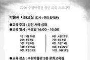 (비전21뉴스) 수원박물관이 2026년 상반기 성인 교육 프로그램에 참여할 수강생을 16일 오전 10시부터 모집한다. 전통의 깊이를 더하는 ‘박물관 서화교실’과 현대적인 감각으로 누구나 쉽게 배울 수 있는 ‘나의 첫 캘리그래피’ 두 가지 강좌로 구성됐다. 박물관 서화교실(강사 양택동)은 매주 수요일 서예 심화 과정으로 진행된다. 수강료는 10만 원(10회)이다. 올해 신설된 나의 첫 캘리그래피(강사 김소진)는 매주 금요일 캘리그래피 입문 과정으로 운영되고, 수강료는 5만 원(10회)이다. 강의는 3월 25일부터 5월 29일까지 수원박물관 3층 문화교육실에서 2시간 동안 진행된다. 서예와 캘리그래피에 관심 있는 성인은 누구나 참여할 수 있다. 수원박물관 홈페이지 ‘통합예약시스템’에서 온라인으로 신청하거나 전화로 접수하면 된다. 수원박물관 관계자는 “성인의 내면을 다스리고 예술적 감각을 깨울 수 있는 두 가지 교육 프로그램을 준비했다”며 “시민 여러분의 많은 관심과 참여를 바란다”라고 말했다.