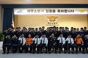 (비전21뉴스) 파주소방서는 오는 12일 오전, 본서 3층 대회의실에서 타 소방서에서 전입한 소방공무원 41명에 대한 임용신고식을 열었다. 화재, 구조, 구급, 행정 등 다양한 분야에서 새롭게 합류한 전입자들은 이날 임용장을 받고, 파주소방서의 가족으로 첫 발을 내디뎠다. 임용식은 서장 주관의 임용장 수여를 시작으로, 보안 및 보건관리 교육, 조직문화 안내 등으로 진행됐다. 각자의 위치는 달라도 ‘시민의 안전’을 향한 마음은 하나라는 것을 나누는 뜻깊은 시간이었다. 김명찬 파주소방서장은 “이제 여러분은 파주소방서라는 하나의 이름 아래 함께 걷는 동료”라며 ““소방공무원으로서의 긍지와 사명을 가슴에 새기고, 시민의 생명을 지키는 길에 함께하길 바란다”고 전했다. 전입자들은 앞으로 파주소방서의 일원으로서, 각자의 위치에서 사명감과 책임감을 갖고 시민의 생명과 안전을 지키는 데 힘을 보탤 예정이다.