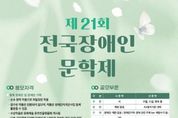 (비전21뉴스) 고양시장애인종합복지관은 3월 19일까지 전국의 장애인 및 장애인 가족을 대상으로 ‘제21회 전국장애인문학제’ 작품 접수를 진행한다. 올해로 21회를 맞이하는 전국장애인 문학제는 장애인과 장애인 가족들이 주체적으로 자신의 이야기를 글로 표현하며 창작 활동에 참여할 수 있도록 마련된 자리다. 이번 문학제에서는 총 29명의 수상자를 선정할 예정이며, 총상금은 950만 원 규모다. 접수된 작품은 공정한 심사를 거쳐 수상작을 선정하며, 심사 결과는 4월 1일 발표될 예정이다. 시상식은 4월 22일 고양시장애인종합복지관에서 진행되며, 수상자들에게 상장과 상금이 수여된다. 또한 수상작은 문화예술플랫폼에 게시하여 수상자의 작품을 소개하고, 장애인 문학 작품을 대중에게 널리 알릴 예정이다. 고양시장애인종합복지관은 앞으로도 장애인이 주체적으로 문화예술 활동에 참여할 수 있는 기회를 확대하고, 창작 활동이 일회성으로 끝나지 않고 지속될 수 있도록 다양한 지원을 이어갈 계획이다. 문학제와 관련한 자세한 사항은 고양예술누리 누리집(홈페이지)에서 확인할 수 있으며, 스마트복지기획팀으로 문의하면