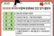 (비전21뉴스) 광명시는 시민들의 건강한 생활습관 형성과 걷기 문화 확산을 위해 ‘제13회 다함께 광명해요 건강 걷기 챌린지’를 진행한다. 이번 챌린지는 오는 11월 1일부터 15일까지 15일간 열리며, 광명시민과 광명시에 소재한 직장인이면 누구나 참여할 수 있다. 참가자는 기간 동안 총 10만 보를 걸으면 되며, 1일 최대 1만 보까지만 인정된다. 참여 방법은 간단하다. 10월 29일부터 워크온(WalkOn) 앱을 설치하고 광명시 공식 커뮤니티에 가입한 뒤 ‘제13회 건강 걷기 챌린지 참여하기’를 눌러 걷기를 시작하면 된다. 단, 목표 걸음을 달성한 시민은 ‘응모하기’ 버튼을 눌러 참여를 완료하면 된다. 누적 걸음 수 목표를 달성한 참여자 중 추첨으로 100명에게 모바일 문화상품권 5천 원권 1매를 지급한다. 당첨자 발표와 상품 지급은 11월 17일부터 11월 21일까지 진행할 예정이다. 나기효 건강위생과장은 “매회 많은 시민이 참여하는 ‘다함께 광명해요 건강 걷기 챌린지’는 일상 속 건강한 습관을 형성할 좋은 기회다”며 “시민들이 걷기를 통해 건강도 챙기고, 작은 선물도 받아가길 바
