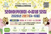 (비전21뉴스) (재)의왕시청소년재단 부곡동청소년문화의집이 청소년들의 창의성과 실천 역량을 키우는 배움의 장을 조성하기 위해‘2026년 모아아카데미 2분기(4~6월)’ 수강생을 모집한다. 이번 과정은 ▲창의 ▲미디어 ▲문화창작 3개 분야로 구성되어 있으며, 브레인큐브 ·보드게임·웹툰·ITQ 자격증 등 청소년들의 관심을 사로잡을 다양한 프로그램으로 구성됐다. 총 8개 프로그램 13개반이 이번 강좌로 개설되며, 부곡동청소년문화의집은 청소년들이 자신의 흥미와 진로 방향에 맞춰 주도적으로 학습을 선택하고 경험할 수 있도록 프로그램을 체계적으로 구성했다. 아울러, 강좌 특성에 맞춘 맞춤형 운영을 통해 참여 중심의 수업 환경을 마련하고, 청소년들이 스스로 배우고 성장하는 과정을 경험할 수 있도록 했다. 강좌의 신청은 3월 17일부터 3월 27일까지 온라인(홈페이지)로 하거나 방문으로 가능하다. 아울러, 수강료 감면 혜택을 희망하는 청소년은 사전등록이 필요하다. 하반기 감면 사전 등록 기간은 3월 13일까지이며, 최근 3개월 이내 발급된 관련 증빙 서류를 지참해 부곡동청소년문화의집으로 방문 등록해야