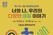 (비전21뉴스) 시흥시는 시민이 함께 만들고, 시민이 주인공인 ‘제17회 시흥시평생학습축제’를 오는 10월 24일부터 26일까지 3일간 시흥ABC행복학습타운에서 개최한다. 지난 2006년에 처음 시작된 시흥시평생학습축제는 배움을 통해 성장한 시민들이 학습의 즐거움과 성과를 함께 나누고 축하하는 한마당으로, 올해 17번째를 맞이한다. 이번 축제는 ‘너와 나, 우리의 다양한 배움 이야기’라는 주제로 초청 강연, 체험, 전시, 공연, 포럼 등 시민 누구나 참여할 수 있는 다채로운 프로그램이 마련됐다. 10월 24일 오전 10시에는 TV예능 프로그램인 ‘유 퀴즈 온 더 블럭’에 출연해 학교다운 학교의 새로운 모델을 제시한 이명학 교수(前 중동고 교장)의 초청 강연이 시흥ABC행복학습타운 ABC홀에서 열린다. 이어 오후 2시에는 ‘느린 걸음, 다양한 길’을 주제로 생애 전반의 슬로우 러너를 이해하는 학술포럼이 지혜관 2층에서 진행된다. 10월 25일과 26일에는 28개의 체험 프로그램과 20개 팀의 공연, 전시와 먹거리 부스가 운영되며, 26일 오전 10시 30분에는 의사에서 웹툰 작가, 유튜버로 활동 중인