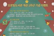 (비전21뉴스) 동두천시 오르빛도서관이 개관 1주년을 맞아 12월 한 달간 다채로운 문화행사를 진행한다. 오르빛도서관은 지난해 12월 개관 이후 시민들의 높은 관심 속에 지역 대표 독서문화 공간으로 자리매김해왔다. 이번 행사는 지역 주민과 함께 도서관의 성장을 기념하고, 책과 문화가 어우러지는 복합문화공간으로서의 역할을 강화하기 위해 마련됐다. 우선 12월 6일에는 1주년 기념 특별행사가 열린다. '제이시아'와 함께하는 클래식 콘서트, '김슬기 작가 초청 1인 어린이 인형극', 가족 참여형 '크리스마스 무드등 만들기 체험' 등이 진행되며, 카카오톡 친구 추가 이벤트와 떡 나눔 행사 등 시민이 함께 즐길 수 있는 프로그램도 준비된다. 이어 12월 9일에는 '김민식 작가 초청 특강'이 예정되어 있다. 특강은 도서관 4층 어린이자료실에서 시민 100명을 대상으로 진행되며, 시민의 문화 감수성을 높이고 독서문화 저변을 확대하는 계기가 될 것으로 기대된다. 이 밖에도 이용자 설문조사, ‘나만의 서재 꾸미기’ 프로그램, 축하 메시지 게시, 도서 대출 이벤트, 1주년 기념 축하영상 상영 및 원화 전시 등이 진행