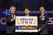(비전21뉴스) 안산시는 지난 1일 (사)스마트허브경영자협회 및 (사)스마트허브사회공헌위원회로부터 성금 500만 원을 기탁받았다고 2일 밝혔다. (사)스마트허브경영자협회는 안산·시흥 스마트허브 산업단지 내 기업 대표들이 중심이 돼 상호 협력과 경영 역량 강화를 도모하고자 1982년 설립된 단체다. 현재 2,000여 개 회원사가 정보 교류와 경영 애로 해소, 산업 현안에 대응하며 기업 경쟁력을 높이고 있으며, 지역사회와 동반 성장하기 위한 봉사활동 및 사회공헌 활동도 이어오고 있다. 이준기 (사)스마트허브경영자협회 회장은 “기업 성장과 지역 발전이 함께 이루어져야 한다는 취지에서 성금을 기탁하게 됐다”며 “앞으로도 협회 차원의 사회공헌 활동을 지속하겠다”고 말했다. 이에 허남석 안산시 부시장은 “어려운 경제 여건 속에서도 기업인들의 지속적인 나눔에 감사드린다”며 “이번에 기탁해 주신 성금은 관내 어려운 이웃에게 소중히 전달하겠다”고 말했다. 한편, 이날 기탁받은 후원금은 경기사회복지공동모금회를 통해 관내 취약계층 등에 전달될 예정이다.