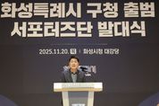 (비전21뉴스) 화성특례시의회는 20일, 화성시청 대강당에서 열린 ‘화성특례시 구청 출범 서포터즈단 발대식’에 참석해 시민과 함께하는 새로운 구청 체제 출범 준비의 의미를 공유했다. 이날 발대식에는 배정수 의장을 비롯해 시민 서포터즈단 등 총 330여 명이 자리했으며, 2026년 2월 화성특례시 4개 구청 신설을 앞두고 시민참여 기반을 다지는 공식적인 출범 행사로 마련됐다. 이번 행사는 ▲개회 및 국민의례 ▲구청 추진 경과 공유 ▲서포터즈 역할 안내 ▲구별 시민 대표 8명에 대한 위촉장 수여 ▲서포터즈단 소감 발표 ▲구청 체제 오리엔테이션 등으로 진행됐다. 특히 ‘2040 도시기본계획으로 보는 화성의 미래’, ‘도시비전 트렌드와 시민참여의 의미’ 등 전문 강연을 통해 향후 구청 체제가 지역행정과 생활에 가져올 변화가 소개되며 시민 호응을 얻었다. 배정수 의장은 “구청 출범은 시민이 체감할 수 있는 밀착형 생활행정의 본격적인 시작”이라며 “300명의 시민 서포터즈단이 지역의 요구와 비전을 현실적 정책으로 연결하는 핵심 주체가 될 것”이라며 축하했다. 한편, 서포터즈단은 2025년 11월부