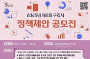 (비전21뉴스) 구리시는 오는 11월 3일부터 11월 23일까지'2025년 제2회 구리시 정책 제안 공모전'을 개최한다고 밝혔다. 이번 공모전의 주제는 ‘구리 시민(영유아·청소년·청년·중장년·노년) 나이별 맞춤형 정책 아이디어’다. 이번 공모전은 구리 시정에 관심 있는 누구나 참여할 수 있으며, 세대별로 다음과 같은 주제로 정책 아이디어를 제안할 수 있다. ▲영유아: 안전한 돌봄 환경 조성과 건강한 성장 지원 정책 ▲청소년: 교육·문화·진로 탐색 기회 확대 정책 ▲청년: 취업·주거·사회참여 촉진을 위한 청년 지원 정책 ▲중장년: 안정적 일자리·건강관리·여가 활성화 정책 ▲노년: 활기찬 노후와 사회참여 확대를 위한 고령 친화 정책 공모 참여는 온라인, 이메일, 방문 또는 우편 접수 중 편리한 방법을 선택해 제출하면 된다. 온라인 제출은 ▲국민신문고 ‘국민 생각함’ 코너 ▲구리시청 홈페이지 내 ‘시민참여’ 메뉴를 통해 가능하다. 또한 전자우편 제출과 구리시청 총무과 열린 시정팀 방문·우편 접수도 할 수 있다. 접수된 제안은 실무 심사, 시민 선호도 조사