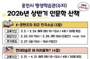 (비전21뉴스) 용인특례시는 25일부터 수지구에 있는 용인시평생학습관에서 인문학 산책 수강생을 모집한다고 13일 밝혔다. 이번 강좌는 한국 소설, 현대미술, 발레 음악과 같이 다채로운 분야에서 용인 시민의 인문학적 사고의 폭을 넓히는 데 도움을 주고자 마련됐다. 교육 과정은 ▲3월 K-콘텐츠와 최근 한국 소설 ▲4월 현대미술은 왜 어려울까? ▲5월 음악을 통한 발레의 이해‘로 구성돼 있으며 매월 다른 주제로 진행된다. 대상은 19세 이상 용인 시민이라면 누구나 가능하며 지역 내 기업 재직자, 재외국민, 결혼이민자도 신청할 수 있다. 과정별 정원은 30명이며 수강료는 1만 원이다. 3월 과정은 25일부터 26일까지 용인시평생학습관 누리집에서 선착순 모집한다. 4월과 5월 과정은 각 과정 시작 전월에 접수하면 된다. 모바일 신청도 가능하다. 시 관계자는 “인문학은 일상에 깊이를 더하고 사고의 폭을 넓혀주는 중요한 분야”라며 “시민들의 적극적인 관심과 참여를 기대한다”고 했다.