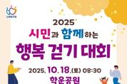(비전21뉴스) 안양시는 오는 18일 오전 8시 30분부터 학운공원 운동장(희성초 건너편)에서‘시민과 함께하는 행복걷기대회’를 개최한다고 15일 밝혔다. 안양시체육회가 주최하고 안양시걷기협회가 주관하는 이번 행복걷기대회는 학운공원 다목적운동장에서 출발해 학운교를 횡단하여 비산인도교를 반환점으로 되돌아오는 약 1.6㎞ 코스로, 약 40분이 소요될 예정이다. 참여를 원하는 안양시민은 별도의 사전신청 없이 행사 당일 가벼운 운동복 차림으로 학운공원 다목적운동장으로 오면 된다. 안양시걷기협회는 이번 걷기대회에 참가하는 시민을 위해 텔레비전(TV), 공기청정기, 전기밥솥, 전자레인지, 발 마사지기, 자전거 등 다양한 경품을 준비했다. 시 관계자는 “안양 시민들이 가족, 친구와 함께 행복한 걷기대회에 참여해 건강을 챙기시고, 다가오는 겨울도 활력 있게 보내시길 바란다”고 말했다.