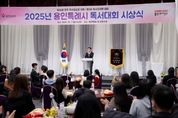 (비전21뉴스) 용인특례시는 1일 시청 컨벤션홀에서 ‘2025년 제32회 용인특례시 전국 독서감상문 대회’와 ‘2025년 독서마라톤 대회’ 시상식을 개최했다. 올해 독서감상문 대회엔 총 981편이 접수됐으며, 심사위원단은 내용 이해도‧감정 표현‧문장력 등을 기준으로 총 26편을 수상작으로 선정했다. 도서관은 지난 8월 11일부터 9월 21일까지 ‘소년이 온다’, ‘모우어’, ‘비스킷’ 등 용인특례시 올해의 책을 대상으로 한 감상문을 접수했다. 대상은 ‘모우어’를 읽고 정교한 문장력과 탁월한 묘사력으로 미래 사회의 인간다움에 관해 깊이 있는 성찰을 담아낸 안경선 씨가 차지했다. 최우수상은 문예서‧정희정(초등부), 김단아 양(청소년부), 송지은‧박진현‧김성현 씨(일반부)가 차지했다. 우수상에는 8명, 장려상에는 11명이 뽑혔다. 책을 읽고 서평을 작성해 읽은 양을 코스로 환산하는 시민 참여형 독서 캠페인인 독서마라톤 대회엔 올해 5735명이 참여해 2021명이 완주했다. 도서관은 이 가운데 기록과 성취도를 기준으로 18명(팀)을 수상자로 선정했다. 독서마라톤 최우수
