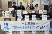 (비전21뉴스) 수원시 영통구 망포2동 행정복지센터는 지난 6일, 버팀병원이 설 명절을 맞아 소외된 이웃을 돕기 위해 100만 원 상당의 컵라면을 기탁했다고 밝혔다. 버팀병원은 진료 활동과 더불어 망포2동 지역사회보장협의체 위원으로 활동하며 지속적인 사회공헌과 나눔 실천에 앞장서고 있다. 이번 전달식에는 태안농협 태장지점(지점장 위종욱)과 서울샤치과도 함께 참여해 햇반과 컵라면 10박스, 곱창김 25봉을 후원하며 나눔의 의미를 더했다. 박준수 버팀병원 대표원장은 “설 명절을 맞아 어려운 이웃들에게 따뜻한 마음을 전하고자 후원을 준비했다”며 “앞으로도 지역사회와 함께 꾸준한 나눔 활동을 이어가겠다”고 말했다. 이용태 망포2동장은 “지역사회보장협의체 위원으로서 나눔 문화 확산에 기여해 주시는 버팀병원과 함께해주신 후원 기관들에 깊이 감사드린다”며 “기탁된 후원 물품이 소외된 이웃들에게 잘 전달돼 따뜻한 명절을 보내는 데 도움이 되길 바란다”고 전했다. 한편, 기탁된 물품은 설 명절을 맞아 관내 홀몸노인과 한부모가정 등 저소득 가구에 전달될 예정이다.
