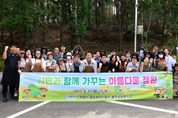 (비전21뉴스) 화성특례시가 시민과 함께하는 정원 만들기에 나서 눈길을 끌고 있다. 시는 23일 송동마을 인근 동탄호수공원에서 지역 주민과 시민정원사가 직접 참여해 정원을 가꾸고 공동체 문화를 확산하기 위한 ‘시민참여형 수국 식재 행사’를 개최했다. 이날 행사에는 정명근 화성특례시장, 배정수 화성특례시의회 의장, 시민정원사, 송동마을 주민 등 50여 명이 참여해 목수국 400주를 함께 심었다. 소나무 숲이 울창한 곳에 터를 잡고, 소의 형상을 닮아 ‘소라리’라 불렸던 송동마을에 목수국 정원이 더해지면서, 자연과 사람의 정성이 깃든 새로운 쉼터가 될 것으로 기대된다. 정명근 화성특례시장은 “오늘 심은 목수국이 만개했을 때를 상상해보니 주민들이 도심 속 공원을 방문해 삶의 여유를 찾고 휴식하는 모습이 그려진다”며 “앞으로도 녹색 공간을 확충해 시민과 자연이 조화롭게 어우러지는 도시를 만들어 가겠다”고 말했다.
