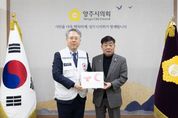 (비전21뉴스) 윤창철 양주시의회 의장은 29일 오후, 의장실에서 대한적십자사 경기도지사 우광호 사무처장에게 ‘2026년 적십자 특별회비’를 전달했다. 이날 전달식에는 대한적십자사 경기도지사 이계선 정기후원팀장, 나형진 북부봉사관장을 비롯해 대한적십자사봉사회 박주수 경기도협의회장과 정진수 양주시협의회장 등 9명이 참석했다. 특히, 윤창철 의장은 전달식을 마친 뒤 우광호 사무처장 등 적십자사 관계자들과 지역의 회비 모금 확대와 봉사활동 활성화 방안에 대해 의견을 교환했다. 양주시의회는 복지 사각지대에 놓인 취약계층을 지원하고 긴급재난구호와 공공의료, 국제협력 등 대한적십자사의 다양한 인도주의 활동에 동참하기 위해 매년 특별회비를 전달하고 있다. 이날 건넨 적십자회비는 위기에 처한 이재민과 저소득층 구호 사업, 사회봉사 사업, 지역 보건 및 혈액 사업 등에 쓰일 예정이다. 윤창철 의장은 “다양한 구호사업으로 숭고한 인도주의를 몸소 실천해 온 적십자 회원들의 노고에 항상 감사드린다”며 “양주시의회도 소외계층 지원 등 따뜻한 나눔문화 확산을 위해 지속적으로 노력하겠다”고 말했다.