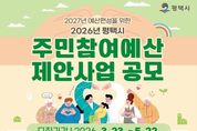 (비전21뉴스) 평택시가 3월 23일부터 5월 22일까지 2027년도 예산 편성을 위한 2026년도 주민참여예산 제안사업 공모를 시행한다. 주민참여예산 제도는 예산 편성 등 예산 전 과정에 주민의 참여를 확대해 예산 운영의 투명성과 민주성을 높이기 위한 제도다. 평택시는 2026년 주민참여예산 제안사업으로 접수된 611건 가운데 171건, 약 31억 원 규모의 사업을 예산에 반영했다. 2026년도 주민참여예산 운영 규모는 56억 원이며, 공모 분야는 ▲평택시 전반의 현안 해소와 시민 편익 증진을 위한 시 일반제안사업 ▲읍면동 지역 문제 해결을 위한 읍면동 일반제안사업 ▲읍면동 주민자치회가 사업의 기획부터 실행까지 주도적으로 참여하는 주민자치회 제안사업 등 3개 분야로 운영된다. 제안을 희망하는 주민은 제안서를 작성해 평택시청 더나은평택(주민참여예산 ' 주민참여예산 제안하기)을 통해 제출하거나, 평택시청 자치행정협치과 및 읍면동 행정복지센터로 방문, 우편, 이메일로 접수할 수 있다. 아울러 ‘찾아가는 주민참여예산학교’와 ‘주민참여예산 제안발굴 컨설팅’등을 통해 관련 교육과 컨설팅도 지원받을 수 있다.