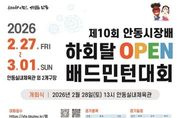 (비전21뉴스) 『제10회 안동시장배 하회탈 OPEN 배드민턴대회』가 오는 2월 27일부터 3월 1일까지 3일간 안동체육관과 안동다목적체육관에서 개최된다. 안동시배드민턴협회가 주최․주관하는 이번 대회는 배드민턴의 생활체육 저변 확대와 지역경제 활성화를 목적으로 마련됐으며, 1,600여 명이 참가해 평소 갈고닦은 기량을 겨룰 예정이다. 경기는 남자복식, 여자복식, 혼합복식으로 진행되며, 20대부터 70대 이상까지의 연령별 구분을 비롯해 A․B․C․D급 및 안동 초급․초심, 준자강 등 실력에 따른 세부 급수별로 나뉘어 치러진다. 경기 방식은 예선 리그를 거쳐 본선 토너먼트로 이어지며, 모든 경기는 랠리포인트제 25점 1세트 원칙으로 운영된다. 특히 이번 대회는 참가자들을 위한 풍성한 혜택이 눈길을 끈다. 참가자에게는 지역 특산물인 안동간고등어와 중식이 제공되며, 추첨을 통해 가전제품이 경품으로 증정돼 대회의 재미를 더할 전망이다. 각 종목 1~3위에게는 비트로 경기화 및 용품이 수여되며, 상급자들이 포진한 준자강 부문은 팀당 우승 100만 원, 준우승 50만 원, 3위 20만